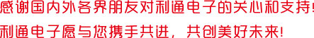 我相信,通過利通新網(wǎng)站這一平臺,能夠進(jìn)一步加深廣大新老客戶對利通的了解和信任,能夠進(jìn)一步增進(jìn)新老合作伙伴友好關(guān)系的發(fā)展,能夠促進(jìn)利通電子實(shí)現(xiàn)“創(chuàng)新創(chuàng)優(yōu)服務(wù)社會,增收增效回報(bào)股東”的企業(yè)愿景!
